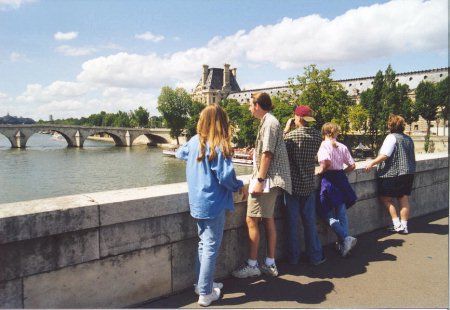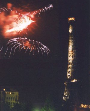 | We figured that we were having just about enough of this and were contemplating on whether we should start heading back so that we could beat the big rush home. The metros were shut down for the momentous occasion, so we were going to have to walk all the way back. As we were trying to decide what we should do, our decision was made for us. The police came and cleared the area where the fire was. That meant we were out of there. We had waited there 2 hours so that we could see a minutes worth of fireworks and a burning underground area. We ended up getting the worst of both ends. After about 10 minutes of walking the real fireworks show started. Now, we were in no position to watch it. The other bad part, is that by the time they had finished, we were only about half way home. So we got to enjoy the mass pandemonium they call French traffic. It doesn't appear that there is much assistance by the police in big events like this, to keep things orderly. People were running red lights. The cars park all over the sidewalks, leaving little room to scurry home. A driver that was parked on the sidewalk decided he wanted to head his car toward the building instead of into the street and he almost pinned me against the wall with his car. He and his friends laughed at me when I hastily got out of way so I could spare my life. As we were crossing one of the roads, a car on the road decided to go in reverse right when we were behind it. Jonathon fell down and cut himself on a broken bottle on the sidewalk. Luckily, he only had minor cuts. There was also a group of many cars that were just backing up quickly on to a very busy main road. People would swerve to avoid them. One guy backed up for about 200 yards on this busy road so that he could get to the intersection that he wanted to turn off on. It was crazy. I was not a happy camper by the time I got home. We got to bed at 1:00AM. That would definitely be the latest that we got to bed on this trip. |
