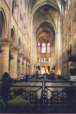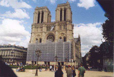| Our next stop was Notre Dame. On the way there we had to get on an RER that was jam packed. Jonathon and I almost didn't make it in time, but Elsie held the doors open and saved the day. When Jonathon and I were starting to try squeezing ourselves on to the train, the doors started to clothes. We both kind of paused before proceeding, fearing that we might become the victims of crushing doors. Elsie was forcing the door open with all of her might. She was quite adamant that we continue getting on. After we got on, a drunk French guy got mad at this little kid and sure looked like he was going to beat the kid up. I guess he hadn't heard the good news about the World Cup. |