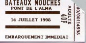 ![]() | We were then ready to try a river cruise on the Seine River. We got there at about 5 minutes till 9:00PM and were able to get right in for the 9:00PM cruise. Everyone is starting to line the streets for the fireworks display that will be later that night. There are food vendors all over the place. |