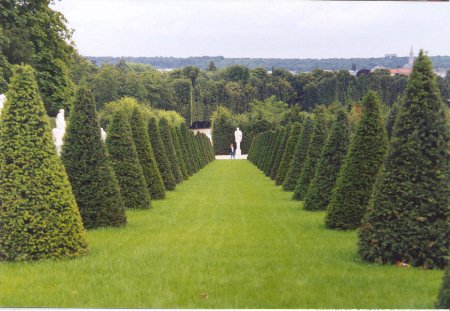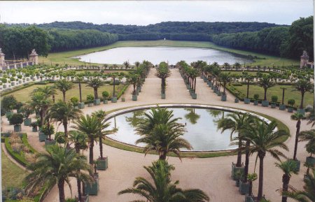 | In back of the palace is a monstrous garden with flowers and shrubs, trees, and fountains. They have Palm trees in planters that they put out there every summer. It is a wondrous sight. |